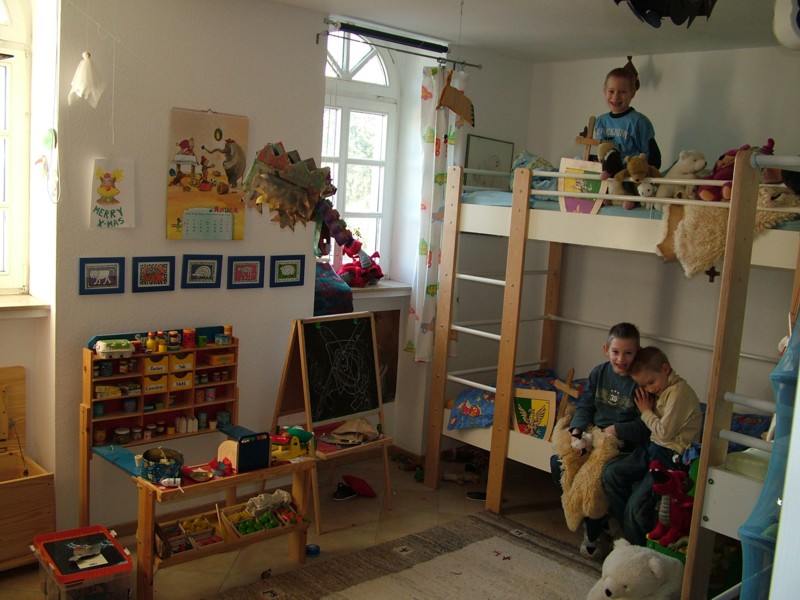 Das Kinderzimmer erreicht man über den Flur. Mit zwei großen Rundbogenfenstern in Richtung Osten, großen Fensterbänken und 18,11 m² Wohnfläche ist es eines der schönsten Zimmer in der Wohnung.