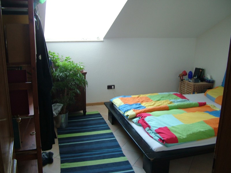 Das Schlafzimmer wird vom Flur betreten. Das Fenster zeigt Richtung Norden. Den hinteren Teil haben wir in einen begehbaren Schrank umgewandelt (leichte Riegipswand -leicht rückbaubar). Die Wohnfläche mit Schrank beträgt 17,69 m².